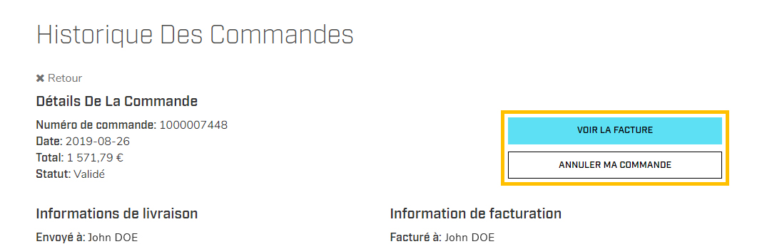 Appuyez sur le bouton Afficher pour chaque commande pour afficher les détails de la commande. Vous pouvez également voir votre facture ou annuler votre commande.- Si vous avez d'autres questions sur l'état de votre commande, veuillez contacter notre équipe d'assistance: