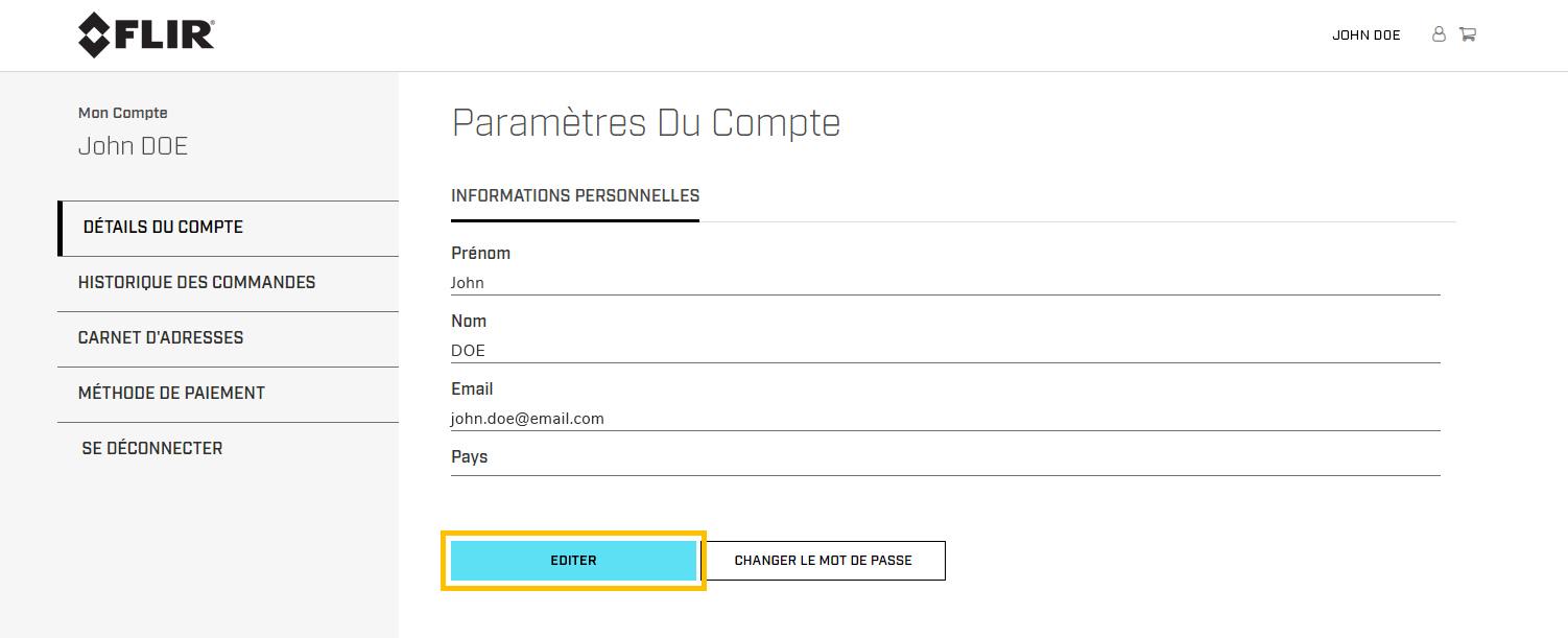 Afin de supprimer complètement votre compte, veuillez contacter : webhelp@teledyneflir.com. Veuillez noter que les seules informations que nous conserverons seront la preuve des transactions que vous avez effectuées sur notre site. - Informations personnelles