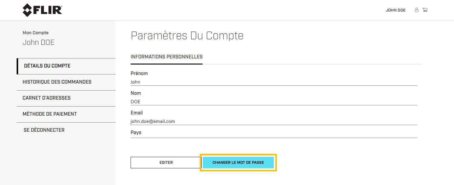 Vous ne pouvez pas partager votre compte avec une autre personne. Veuillez noter que vous acceptez les conditions de création d'un compte par membre lors de la création de votre compte. Vos informations sont personnelles et nous vous recommandons de suivre ces indications, dans votre meilleur intérêt. Des tiers peuvent tenter d'accéder à votre compte sans votre consentement. Si vous vous opposez aux intrusions de tiers sur votre compte, veuillez nous envoyer immédiatement un email à webhelp@teledyneflir.com - Comment mettre à jour mes informations ?